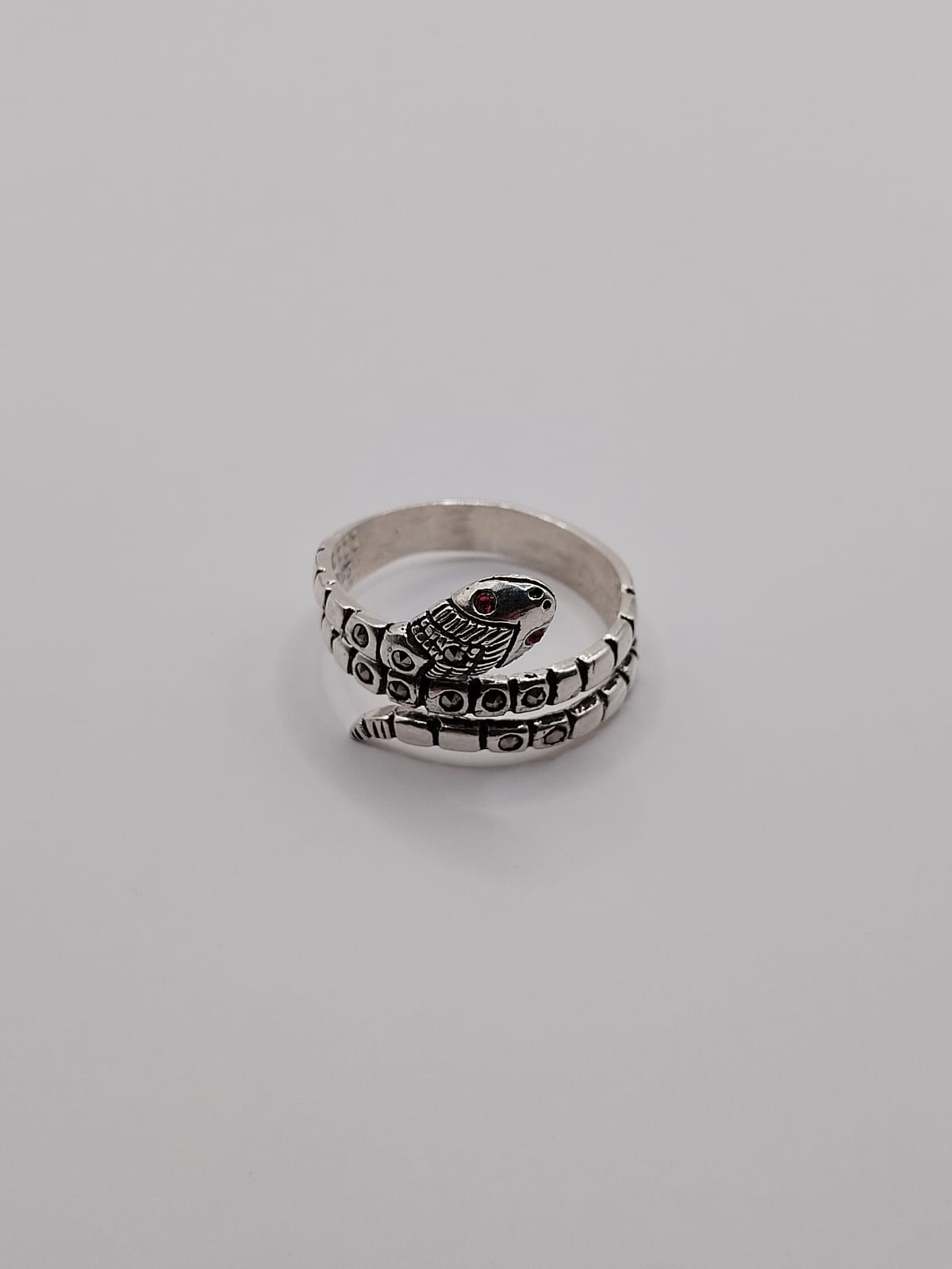 Anillo de serpiente hecho con plata .925 con marquesitas color negro