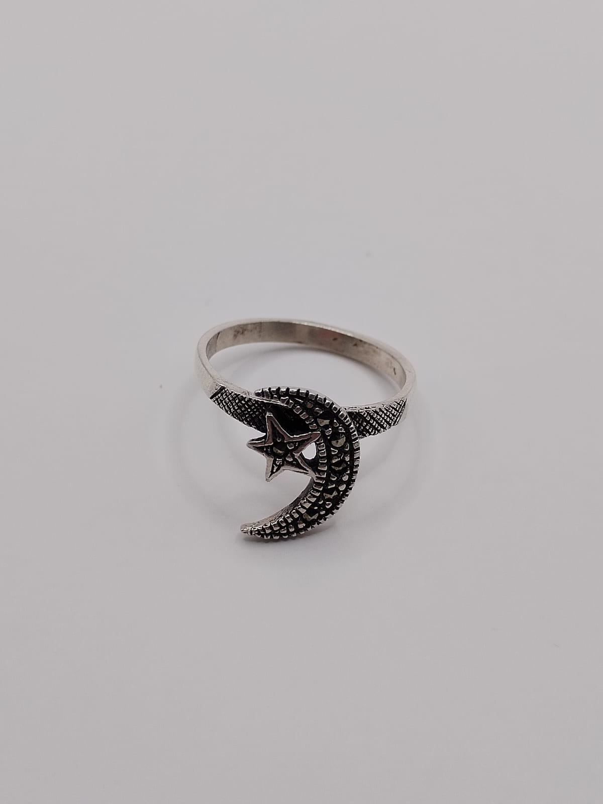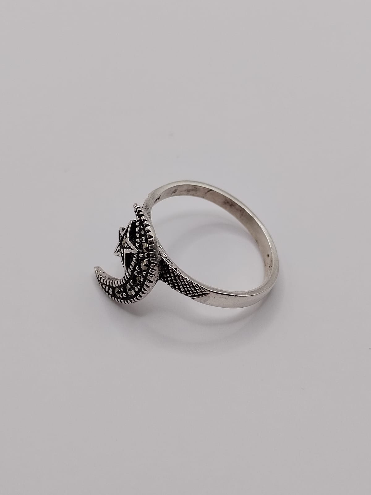 Anillo de luna con sol hecho con plata.925 con marquesitas color negro
