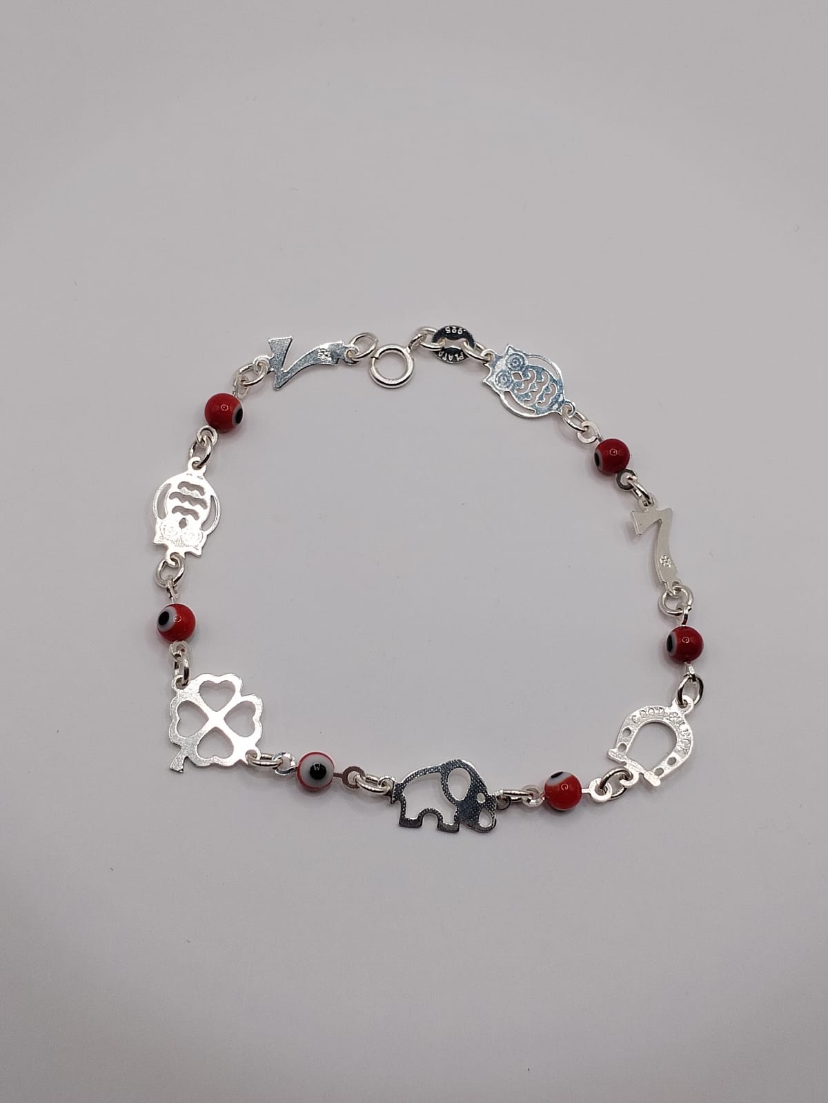 Bonita pulsera de cadena hecha con plata .925 con eslabones de la suerte y ojo visor