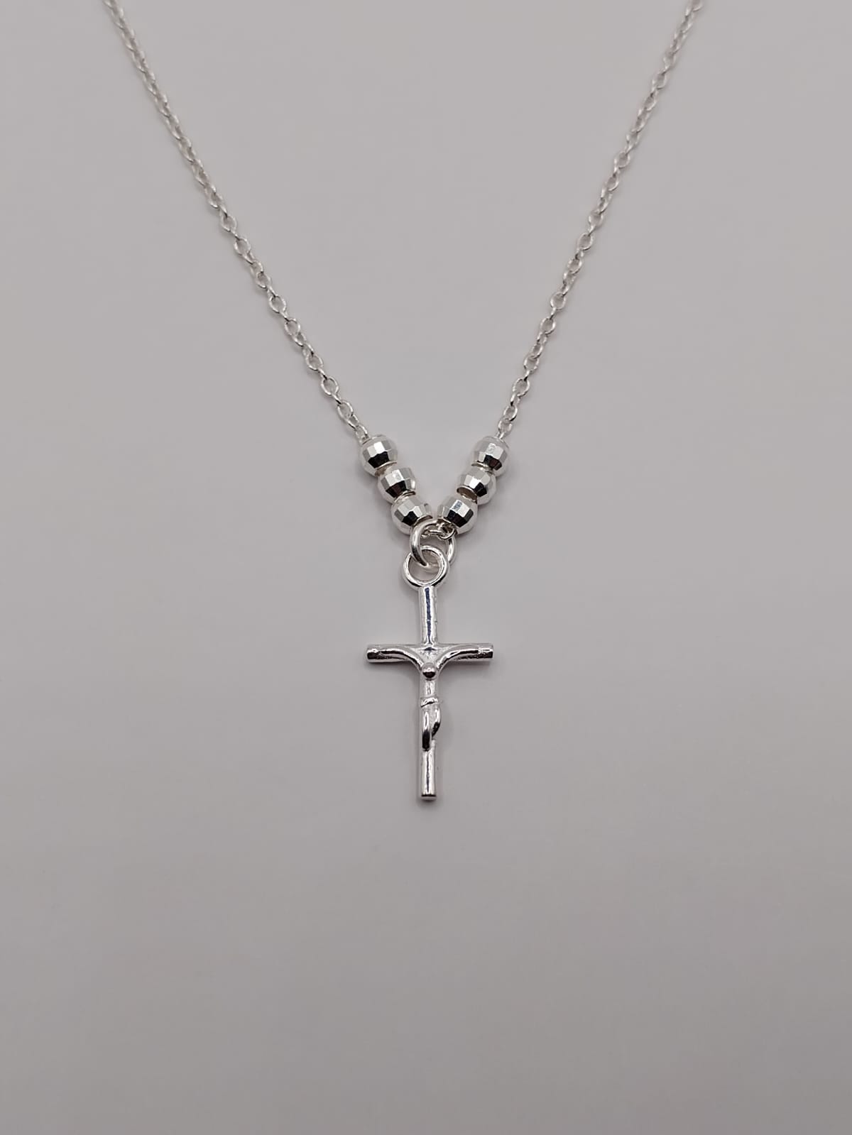 + EnvíoElegante collar de cruz en corte láser hecho con plata .925