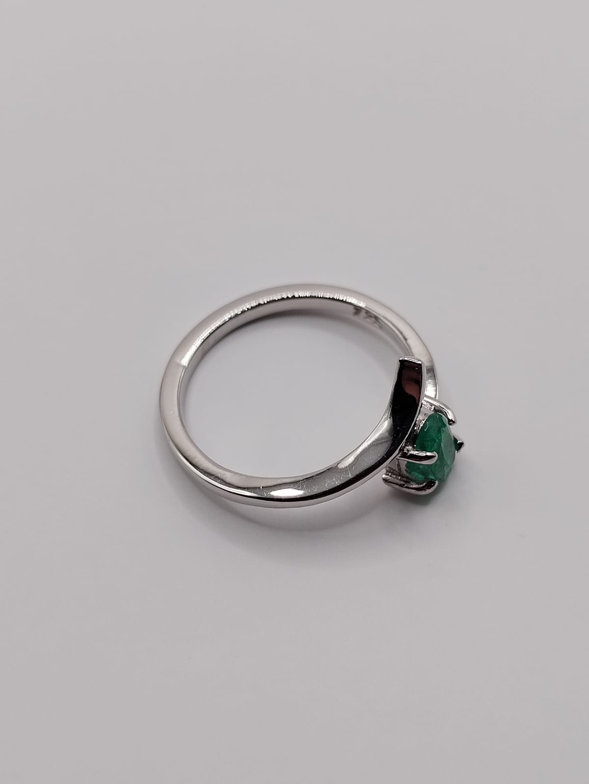 Elegante anillo con esmeralda hecho con plata .925 con fino baño de Platino