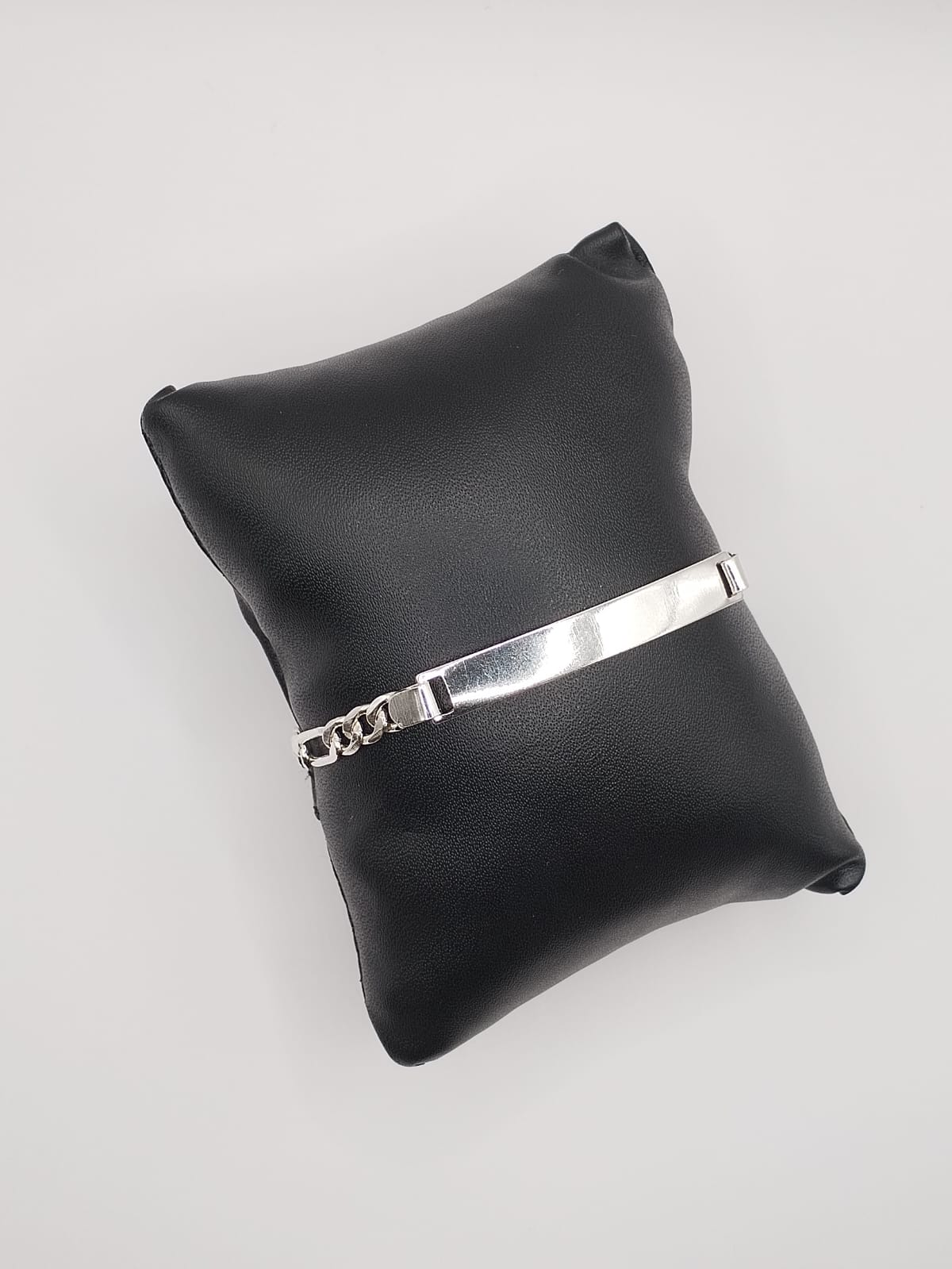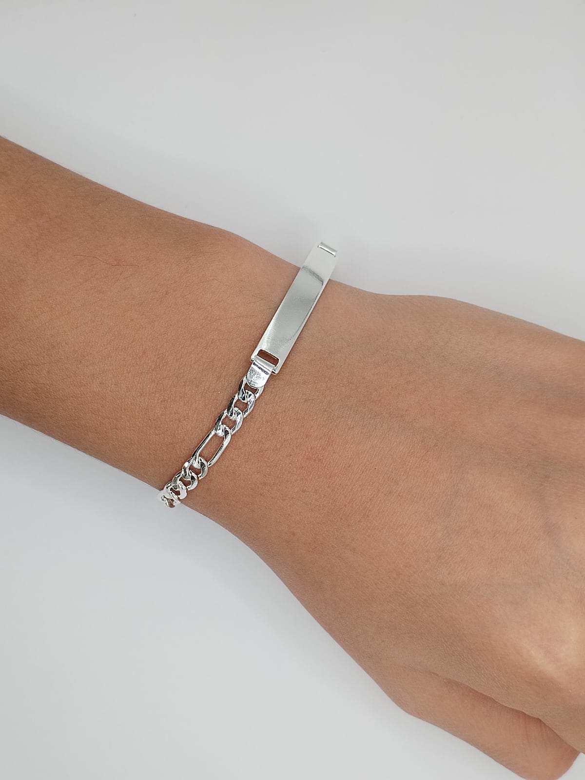 Elegante esclava de plata .925 con estilo fígaro 3×1 con placa personalizable para caballero