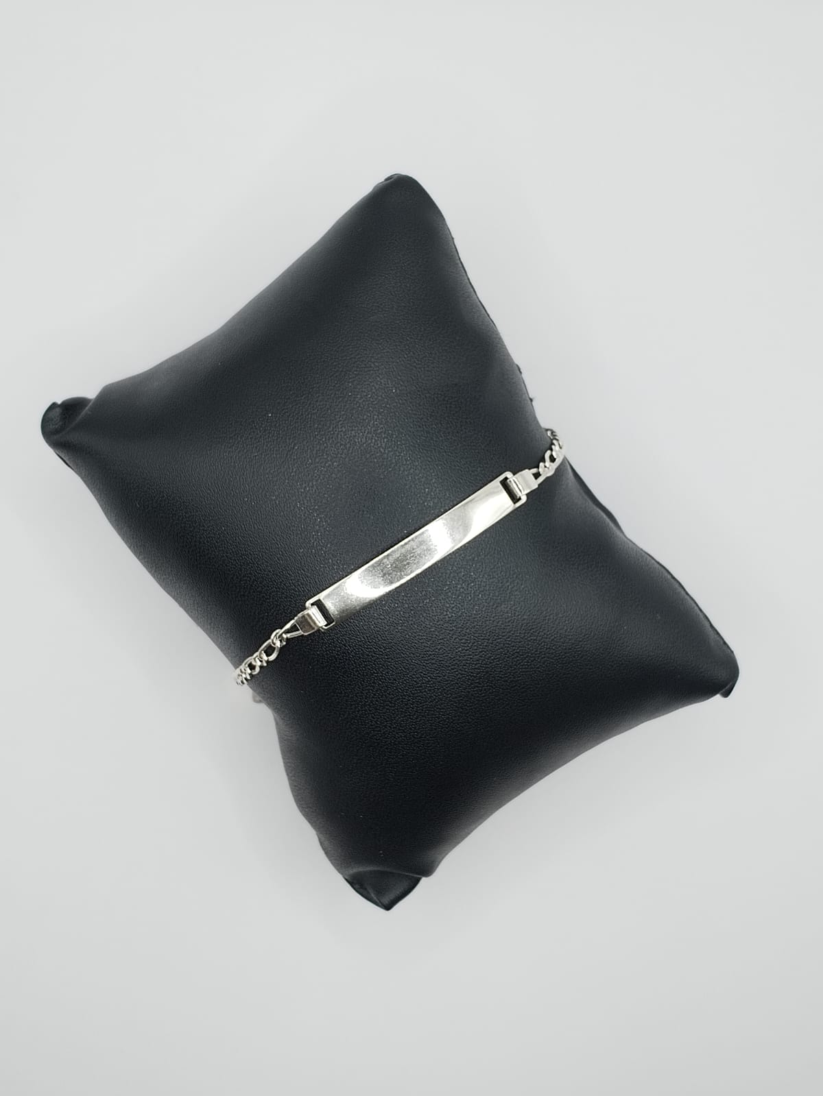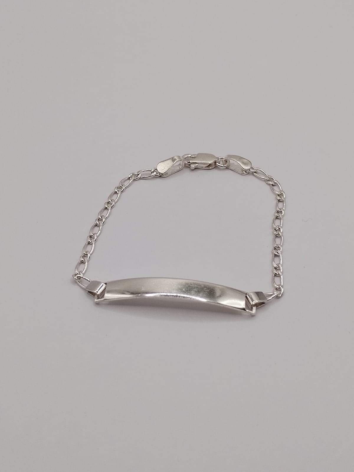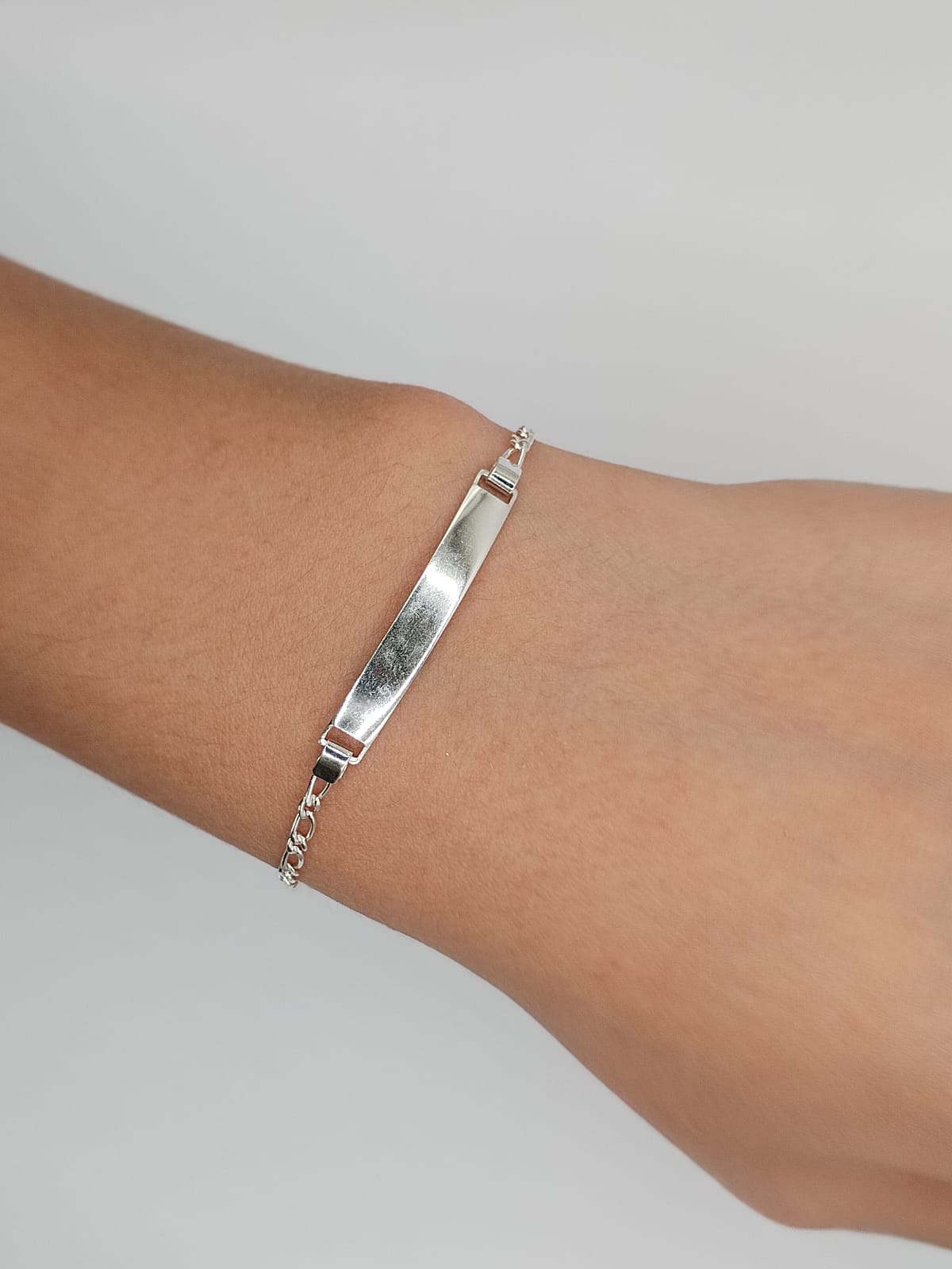 Esclava de plata .925 estilo figaro 3×1 delgada con placa personalizable para niña o niño