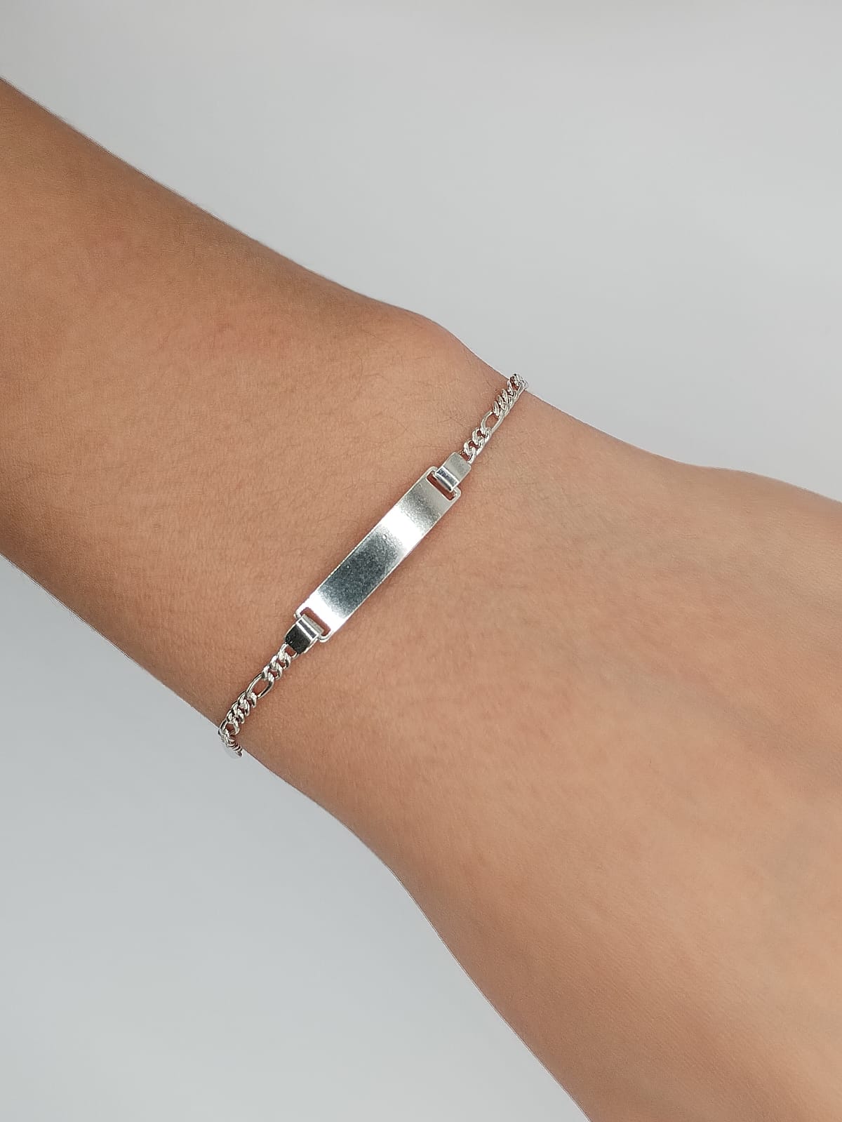 Esclava de plata .925 estilo fígaro 3×1 con placa perzonalizable para Bebé