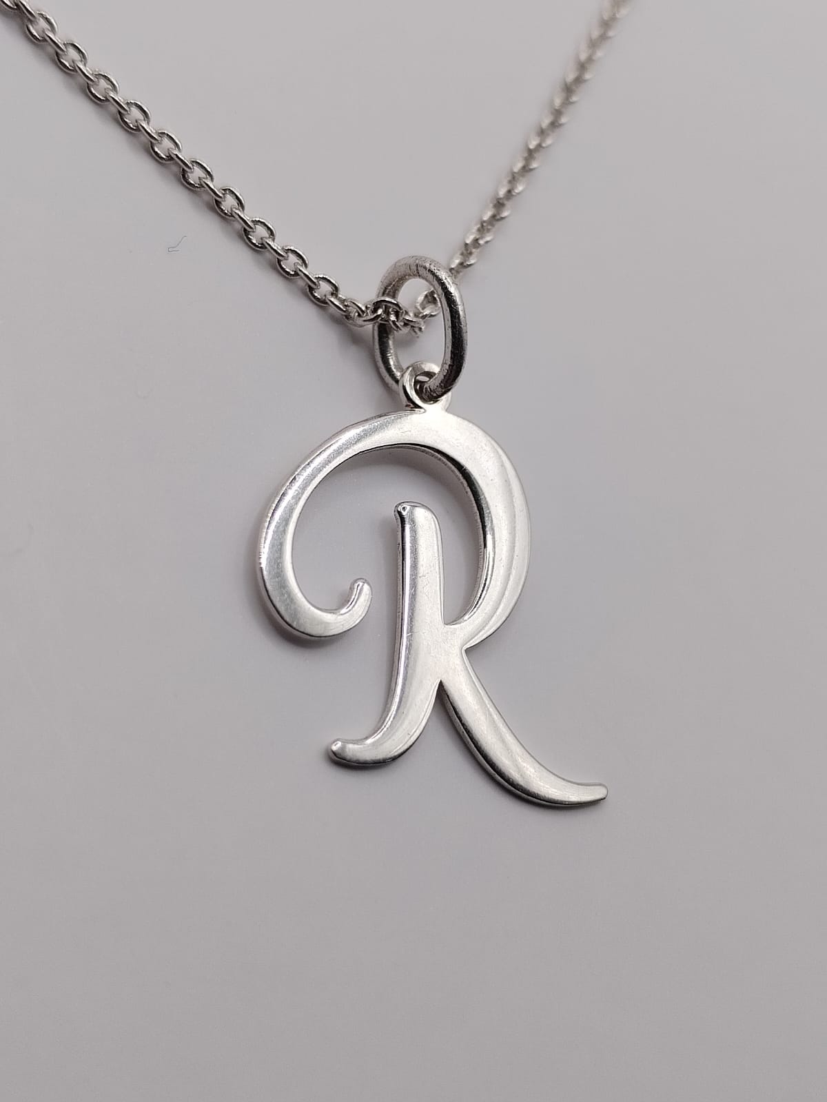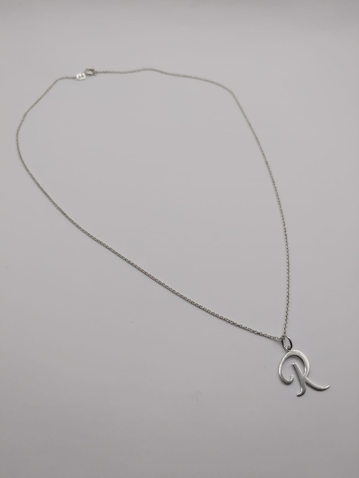 Collar de letra inicial en letra cursiva hecho con plata .925