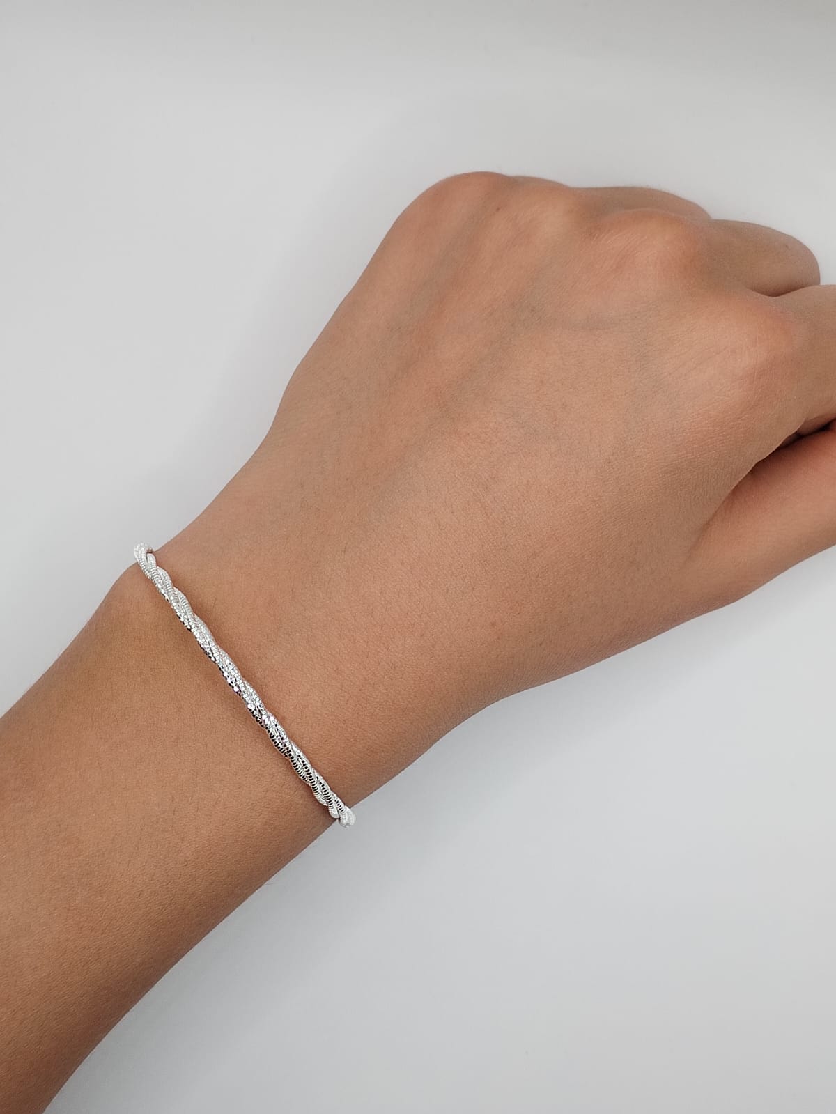 Lujosa pulsera moderna con estilo trenzado hecha de plata esterlina Italy